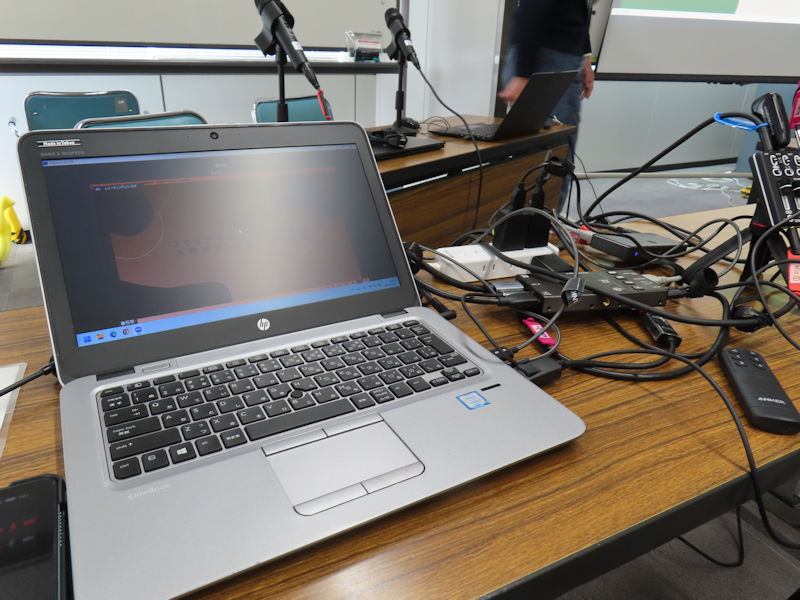 | 階段を下りると受付があります。 受付横にキャリーバックを置かせてもらいます。 この美術展は、アートを通して元町や元町商店街周辺の魅力を再発見し、世代や立場を越えた交流の場をつくることを目的に2025年から始まった企画だそうで、今年は第2回となります。 ちょうど行ったときはゆったり観れましたが、しばらくすると奥の保育園の作品かなを観に来た親子連れ集団でたくさんになってきたので、早々に引き上げました。 作品はそれぞれ印象深く、元町愛にあふれていましたね。 1階でしばし事務局メンバーの到着を待ちます。 しばし待つと皆さんやってこられました。 まずは4階の受付に寄って、プロジェクター借りたり。 今日は6階の会議室です。 -13:00- 会場に入り、機材セッティングを始めます。 あ、ミニターする用に持ってきたタブレットに繋ぐイヤホン忘れた・・・。 音声モニターできないなぁ。 まぁいいか。テストで上手くいっていたのでできていると信じよう。 プロジェクターがなんだかハウリングを起こしていましたが、プロジェクターのスピーカーをオフにすることでクリア。 なんとか準備ができましたね。 音が気になるけど、モニターできないので、無事に配信出来ていることを祈りましょう。 |