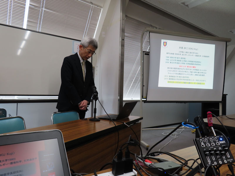 | 井奥先生は、経済学部の先生ですが、東北大学工学部・大学院環境科学研究科の教授もされており、専門は物質・材料科学、医工学、エネルギー・環境科学、文理連接学という、ちょっと経済学部とは離れたイメージの方です。 現在の研究テーマ「くらしといのちのデザイン」は、東日本大震災時に東北大学(仙台)に在籍しており、被災後の風景を眺めながら何のために大学教員になったのか、これから何をすべきなのか考え。年齢(当時50歳)を考えるとチャレンジできる最後のチャンスだと思い、挑戦の道を選択されたとのこと。 異分野連係・融合による新しい科学技術のかたちを模索されています。理科の教養のある文系人材の育成が必要とのこと。 学生時代から人工骨や再生医療用材料の創製に取り組んでおられたそうですが、東北大学大学院教授に就任時からは科学技術の内包するリスクに対し、文理融合によるリスク回避の可能性を考えるようになったことを発端とし、震災を機に、その後の復旧過程でリーダーに必要な条件について考えさせられたそうです。 皆が困っている時に先頭に立つ勇気、大局的にものごとを捉え速やかに具体的指示を出せる決断力、小さなことには動揺しないタフな精神力、困っている人に手を差し延べることのできる豊かな心、このような力と心のあるリーダーが現在の日本には必要とされていることから、日本の未来を創り、支えていくリーダーを育てることに全力を尽くしたいと思ったそうです。 そんなバックグランドがおありの中での、地球温暖化に関するお話しでした。 昨年7月の記録的高温の発生確率は、3.2%だったとのこと。これは温暖化が進んだ現在の確率ですが、温暖化無しと仮定した場合は0.0087%ということなので、恐ろしく確率が上がっていることがわかります。 1946年(昭和21年)の統計開始以降7月として1位の高温だったそうです。 一般的には18世紀中頃から始まった産業革命から地球の温暖化は始まったと言われますが、その影響により音楽や美術(印象派)も進歩したということもあります。 しかし、その進歩はエネルギー改革により成り立っていて、石油・石炭をはじめとする化石燃料の燃焼により成り立ち、燃えれば二酸化炭素(CO2)が発生します。 CO2濃度の世界平均は、産業革命前は278ppmでしたが、2024年では423.9ppmとなっています。 なぜ、278ppmとわかったかというと、南極大陸などの氷床からコアを抜き、その分析をした結果だそうです。 このままでは2100年にはCO2の増加で気温が約4℃上昇し、海洋酸性化が進むと気候変動政府間パネル(IPCC)で指摘されています。 IPCCは、気候変動を評価する主要な機関で、国連環境計画(UNEP)と世界気象機関(WMO)によって設立、気候変動の状態とそれが経済社会に及ぼす影響について明確な科学的見解を提供しています。 世界の平均気温が2℃上昇すると、昨年のような「極端な猛暑」が毎年の用の発生するとも言われています。 2015年(平成27年)COP21で締結された「パリ協定」では2020年以降の地球温暖化対策を定めています。 産業革命前からの世界の平均気温上昇を2℃未満に抑えさらに1.5℃未満を目指していますが。2℃上昇はCO2濃度の世界平均で表すと450ppm。現在423.9ppmなのでほぼ余裕なしです。 アメリカが返り咲いたトランプ政権でパリ協定から再離脱しましたが、どうなるやら・・・。 さらに、海洋酸性化の進行も問題だそうです。 大気中のCO2が海洋中に溶解していくのですが、海洋酸性化が進むと溶解が鈍り、温暖化が加速。また、溶解しきれず、大気へ放出されることもありまた温暖化が加速と悪循環。 で、温暖化により海水が熱膨張し、海面上昇の速度も年々上昇しているそうです。 パリ協定の目標、2℃未満で海面は最大6m上昇、1.5℃未満でも最大3m上昇なので、海辺の建物は水没してしまいますね。 海面水温の長期変傾向は、日本海側が高く推移しているそうです。太平洋側に比べ閉ざされているのにも原因があるのではとのこと。 そうだよね。海水温上昇で最近イカも釣れないもんなぁ。 そして、今世紀末には日本のほぼすべての砂浜が、大幅減少したり完全消滅するそうです。 須磨ビーチもなくなってしまうのかも。 もうひとつ、面白いのは温暖化によって北極海の氷が減少し、ジェット気流の輪が広がり、輪内部の寒気が赤道方向へ拡大するため、日本の冬の平均気温も過去10年間で低下しているそうです。 夏の気温は上がり、冬の気温は下がるということのようですね。 地球温暖化の現状についてレクチャーいただいた上で、未来に向けてエネルギーを考えるとして続き講義いただきます。 世界各国のCO2排出量、全世界約338億トンのうち、中国が31.4%、アメリカが13.6%と続き、日本は5位で2.9%だそうです。 これを人口一人あたりにすると、第1位はアメリカの13.8t/人、2位はロシアの11.3t/人で続く第3位が日本の7.8t/人だそうです。 総量1位の中国は日本に続き7.5t/人ということで、国民一人あたりでは、実は中国より