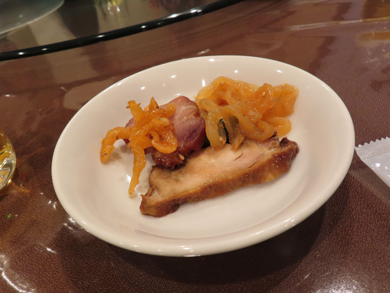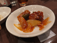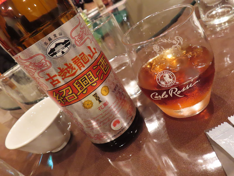 | 途中で紹興酒にシフト。 ロックでチェイサーいただいて飲みます。 最初は2合でお願いしましたが、おかわり頼むとボトルがきました(笑) |